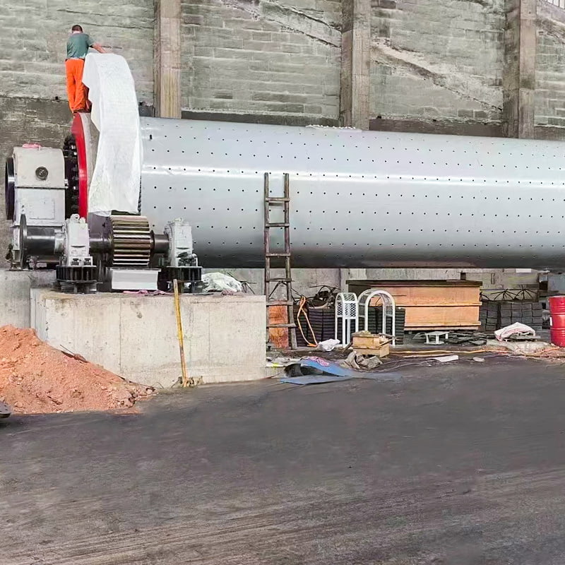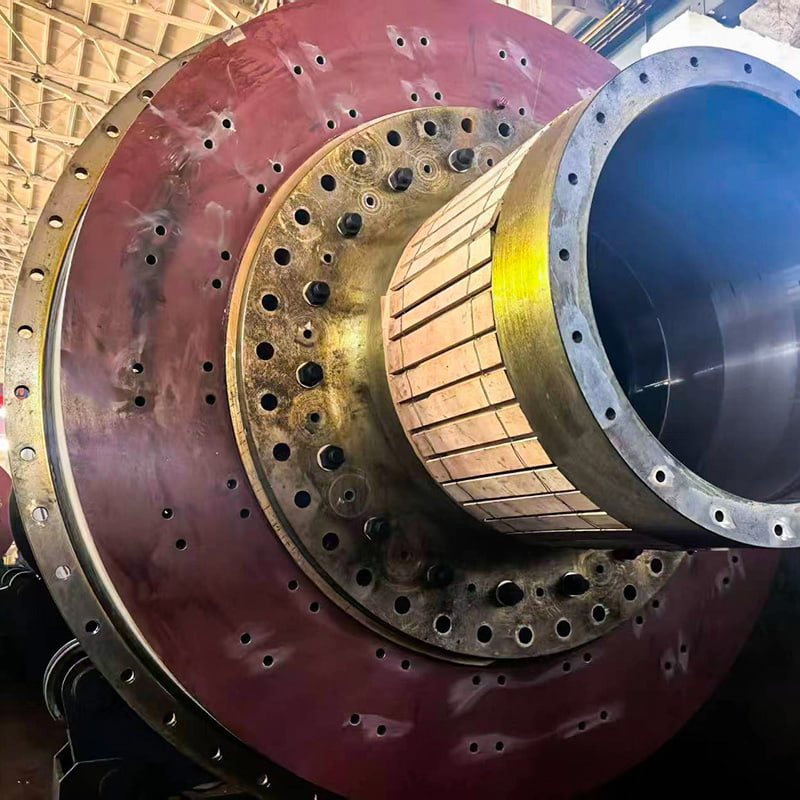 تدخل المادة إلى الأسطوانة من خلال أقسام التغذية والمدخل. تدور وسائط الطحن (كرات الفولاذ/كرات السيراميك) الموجودة في الأسطوانة مع المادة، مما يولد قوة الطرد المركزي. عندما يتم رفع الوسائط إلى ارتفاع معين، فإنها تسقط بسبب الجاذبية. يؤدي تأثير وتآكل وسائط الطحن على المادة إلى سحقها. يتم بعد ذلك تفريغ المادة المسحوقة من خلال منفذ التفريغ، الذي يتم تشغيله بواسطة مياه التغذية والشطف، لإكمال عملية الطحن. تتكون مطحنة الكرات من قسم تغذية، وقسم تفريغ، وقسم دوار، وقسم نقل (مخفض، وتروس نقل صغيرة، ومحرك، وتحكم إلكتروني). العمود المجوف مصنوع من الفولاذ المصبوب مع بطانة داخلية قابلة للإزالة. يتم ربط الترس الدوار الكبير من الصب. تم تبطين الأسطوانة ببطانة مقاومة للتآكل للحصول على مقاومة ممتازة للتآكل. تعمل هذه الآلة بسلاسة وموثوقية.